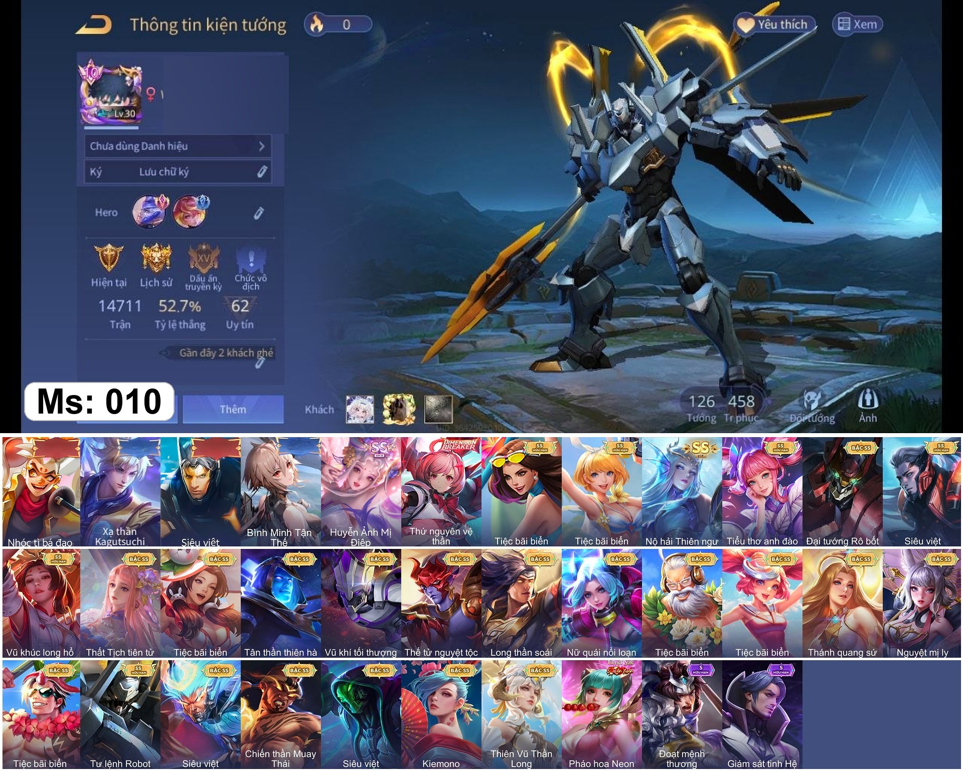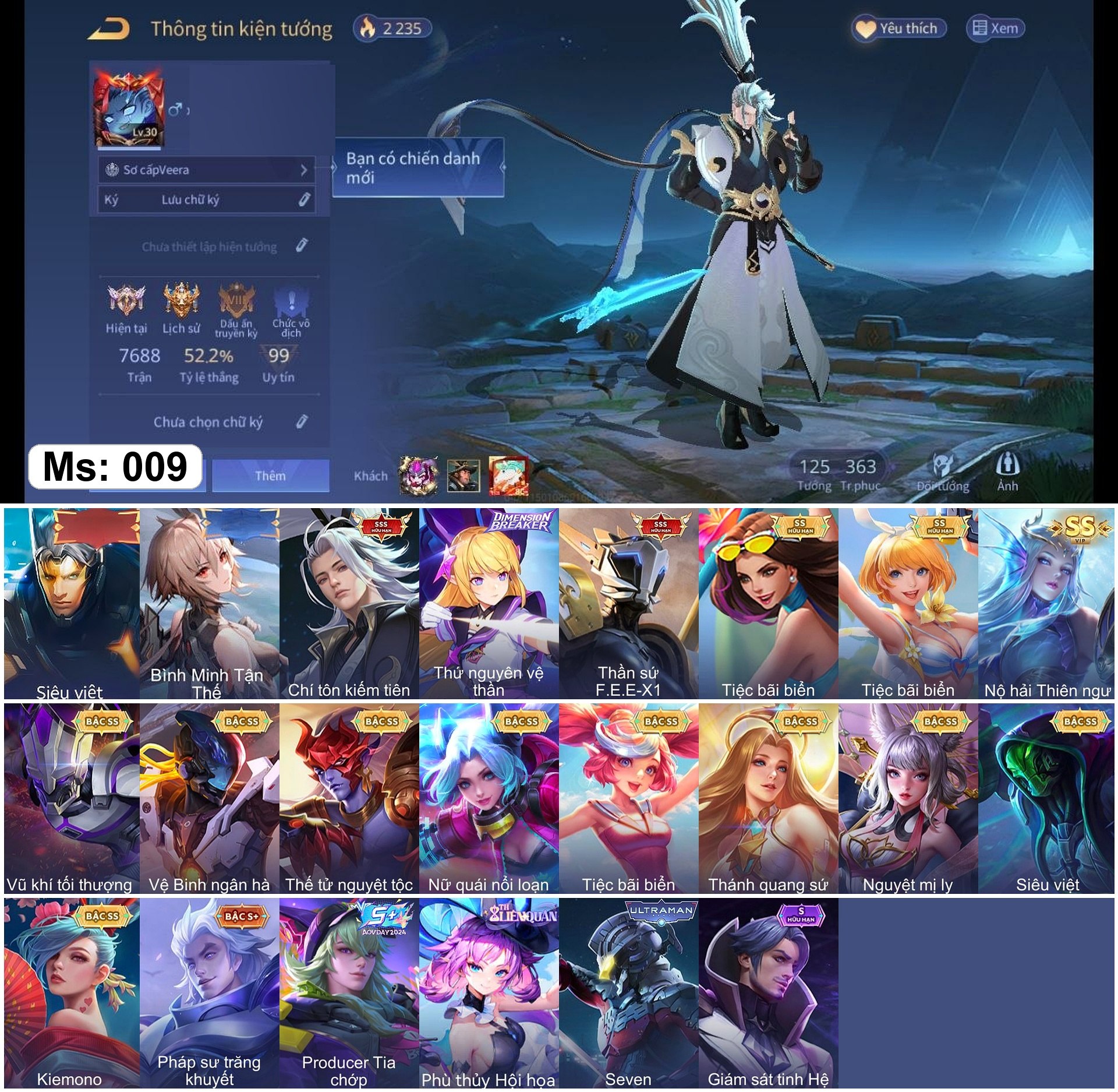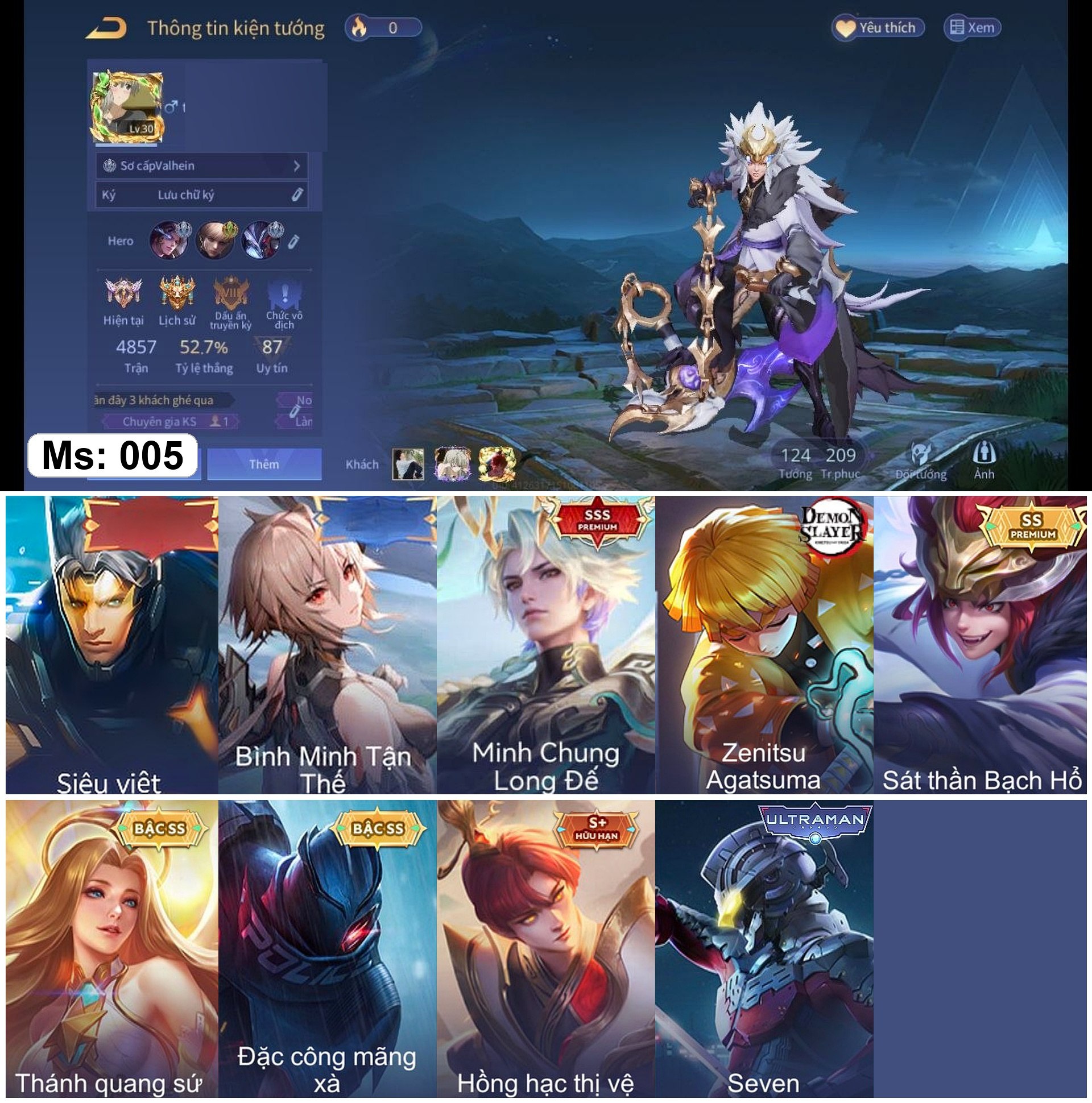 100% Nhận acc 1-2 skin 3SSS