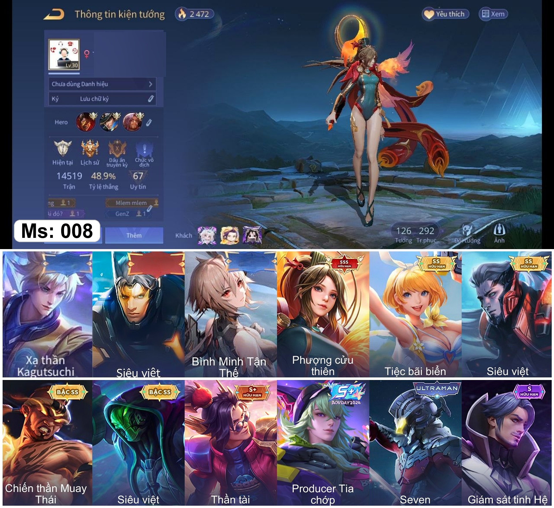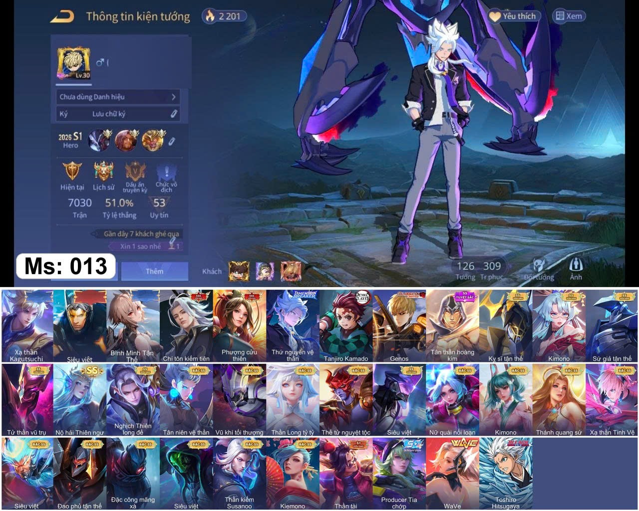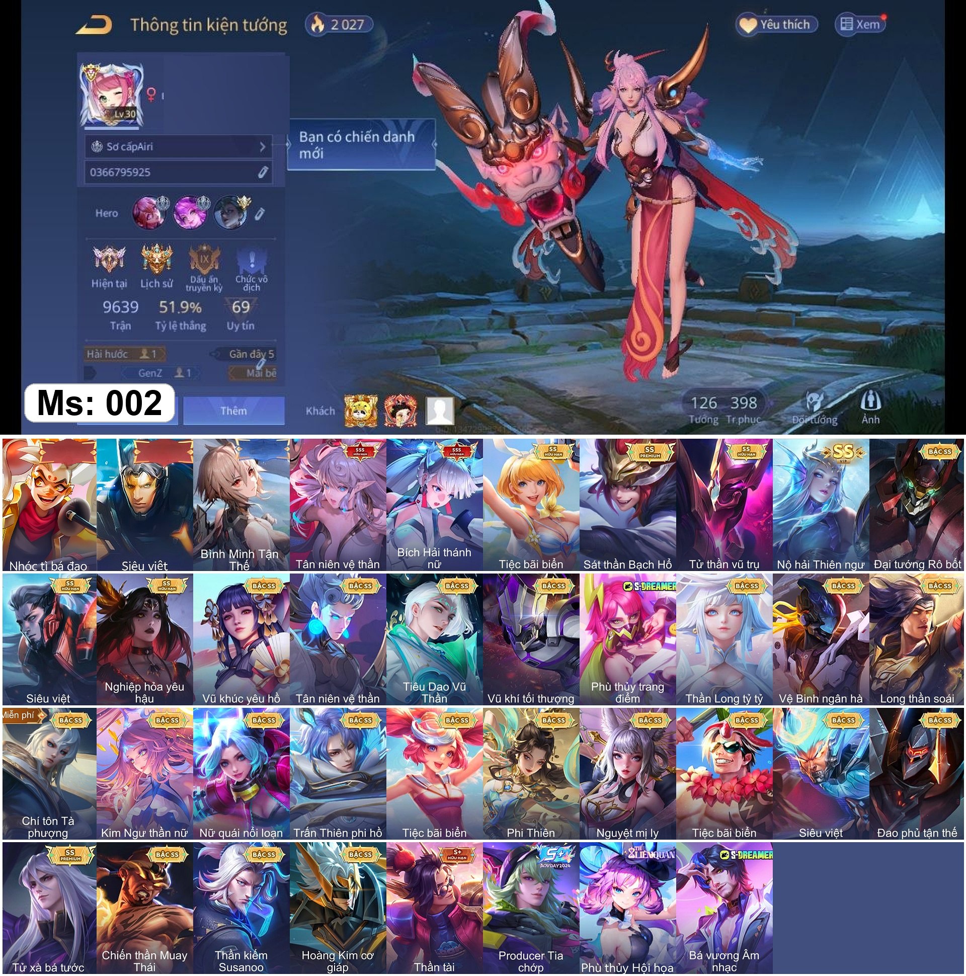 100% Nhận acc 1-2 skin 3SSS